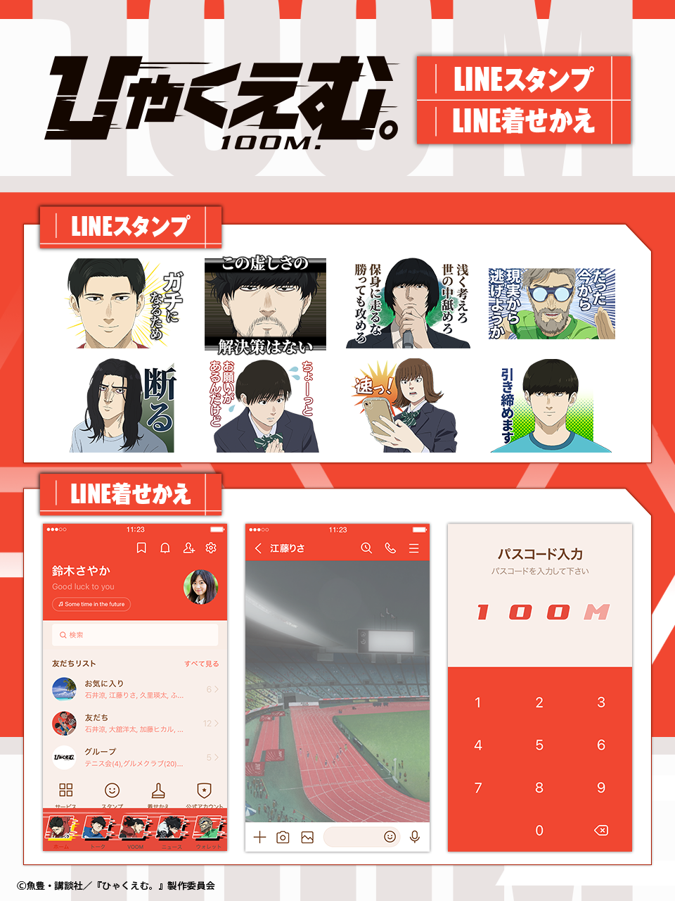 トガシ・小宮・仁神・財津・海棠など、総勢12名の登場人物達の名場面を厳選したLINEスタンプと、陸上トラックをモチーフにした疾走感のあるLINE着せ替えが登場!